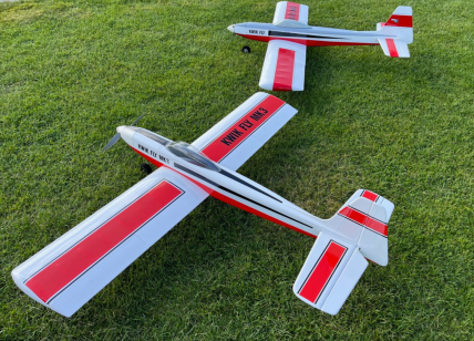 Johann konnte bei hervorragendem Modellfliegerwetter heute seine neue YAK54 zum Erstflug bringen, nachdem in der vergangenen Woche die Fahrwerksbefestigung dem Startversuch nicht standhielt. Heute funktionierte der Start einwandfrei, und Johann beherrschte den in leichter Holzbauweise vorgefertigten Flieger gut, wenngleich dieser sich äußerst agil zeigte. Vor dem nächsten Flug müssen nun nur noch Kleinigkeiten optimiert werden (Fahrwerk versteifen; Ruderausschläge reduzieren), dann wird Johann seine voll kunstflugtaugliche YAK genießen können.